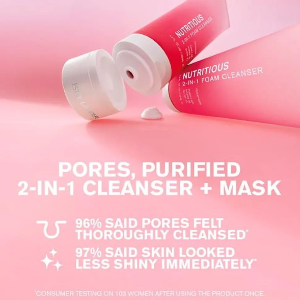 Estee Lauder Nutritious 2-in-1 Foam Cleanser 125ml ReinigingsschuimReinigt & verheldertMet de Nutritious 2-in-1 Foam Cleanser presenteert Estée Lauder een krachtige formule die kan worden gebruikt als dagelijks reinigend schuim of als wekelijks reinigingsmasker. De 97% natuurlijke formule* is gebaseerd op het innovatieve Nutri-9 complex met verantwoord gewonnen zoete kelp en rode algenferment en kokoswaterferment. Het zorgt voor een perfect gereinigde en gezuiverde huid die haar volledige potentieel kan ontwikkelen en optimaal is voorbereid op de verdere verzorging. Al na 1 keer aanbrengen zijn poriën minder zichtbaar (-17% **) en wordt overtollige talg geminimaliseerd (-96%***).• Voor gebruik als dagelijks reinigingsschuim of wekelijks reinigingsmasker• Optimale voorbereiding voor de verdere verzorging• Helpt de huid haar volledige potentieel te ontwikkelen*Volgens ISO-norm 16128, uit plantaardige bronnen, minerale bronnen zonder aardolie en/of water.**Klinische test met 33 vrouwen. ***Consumententests met 103 vrouwen.Geef je huid ’s ochtends en ’s avonds wat liefde: 1. Begin je huidverzorgingsroutine met de 2-in-1 Foam Cleanser. Laat het schuimen en masseer het over een vochtig gezicht. Spoel vervolgens af. Herhaal dit ’s ochtends en ’s avonds.Gebruik als wekelijks masker: Breng een dun laagje aan op de huid. Concentreer je op de T-zone. 1 minuut laten inwerken. Afspoelen. Vermijd het gebied rondom de ogen. 2. Breng de Nutritious Radiant Essence Lotion aan. Indien gewenst kun je na de lotion een serum aanbrengen. 3. om je huid te hydrateren, gebruik je de Nutritious Moisturizer.