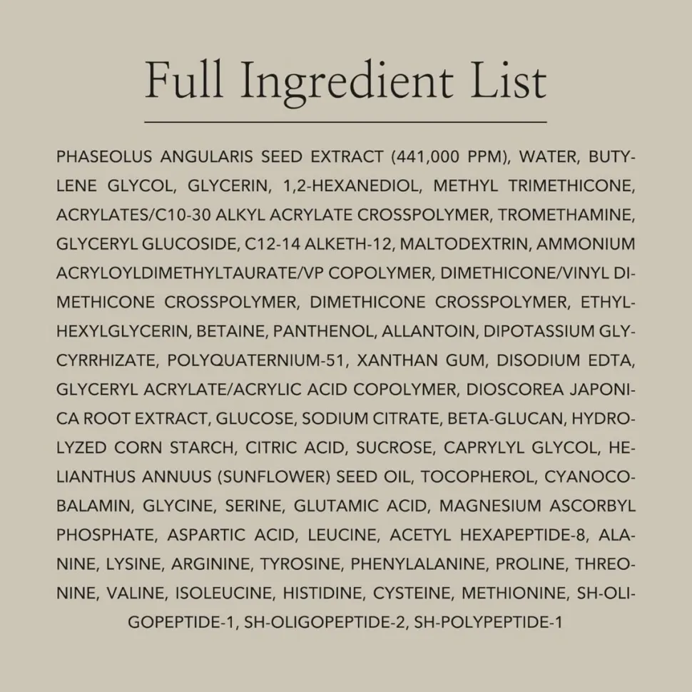 Rode bonen staan bekend om hun hoge gehalte aan antioxidanten en saponinen, die bijdragen aan een gezonde huidbarrière en de elasticiteit van de huid ondersteunen. Tegelijkertijd helpen peptiden tekenen van huidveroudering te verminderen door de huid steviger en gladder te maken. Dankzij de frisse geltextuur wordt het product snel opgenomen zonder een vettig laagje achter te laten, waardoor de huid zacht, verkwikt en gehydrateerd aanvoelt.