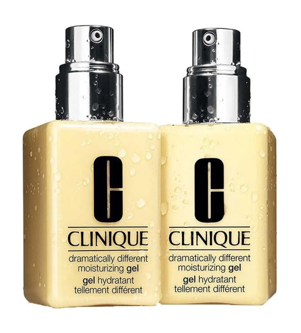 Clinique Moisture Basics Duo Set 2 x Dramatically Different Moisturizing Gel 125ml Type 3-4 Dramatically Different Moisturizing Gel helpt verloren vocht bij te vullen, de huid ziet er frisser en gezonder uit. Laat geen residu achter en is veilig rond de ogen te gebruiken. Verkwikt en verzacht de huid. Gehydrateerde huid ziet er niet alleen egaler en gezonder uit, het is beter in staat om als een barrière tegen externe agressors te functioneren. Deze gel is ontwikkeld door dermatologen om de optimale vochtbalans van de huid te behouden. Dramatically Different Moisturizing Gel werkt verzachtend, egaliserend en het verbetert de conditie en textuur van uw huid. Hoe te gebruiken: Breng twee keer per dag op het gezicht en de hals aan, of waar dat nodig is. Voor het beste resultaat gebruiken na Clinique Clarifying Lotion.