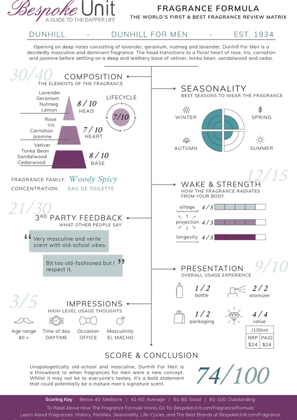 Dunhill for Men 100ml eau de toilette sprayIn 1934 werd Dunhill for Men uitgebracht en het werd al snel een klassieker die door de jaren heen goed is gedragen. Frisse topnoten tintelen de verbeelding met geranium, scharlei, lavendel en citroen, licht floraal op een mannelijke, klassieke manier. De volle hartnoten van anjer en iris voegen kruidigheid toe aan het mengsel, met een vleugje ceder voor warmte. De verleidelijke basisnoten van tonkaboon, eikenmos en leer zijn door en door mannelijk met behoud van een warmte en subtiliteit waar vrouwen ook van houden. Dunhill is de ideale geur voor de man die het sterke, stille type is. De geur heeft een indrukwekkende sillage en brengt volkomen genot met zijn aantrekkelijke aroma.Top : Lavendel, Geranium, Nootmuskaat en Amalfi-CitroenHart : Iris, Roos, Houtachtige noten, Jasmijn en AnjerBasis : Vetiver, Sandelhout, Eikenmos, Virginia Ceder, Tonkaboon en Leer.