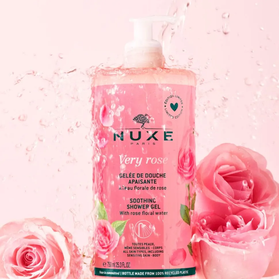 De Nuxe Very Rose Kalmerende Douchegel 750ml biedt een zacht en weldadig moment onder de douche. De formule met rozenbloesemwater reinigt de huid op milde wijze en helpt haar soepel en comfortabel te houden. De frisse geltextuur verandert in een fijn schuim dat gemakkelijk afspoelt en de huid zacht omhult.