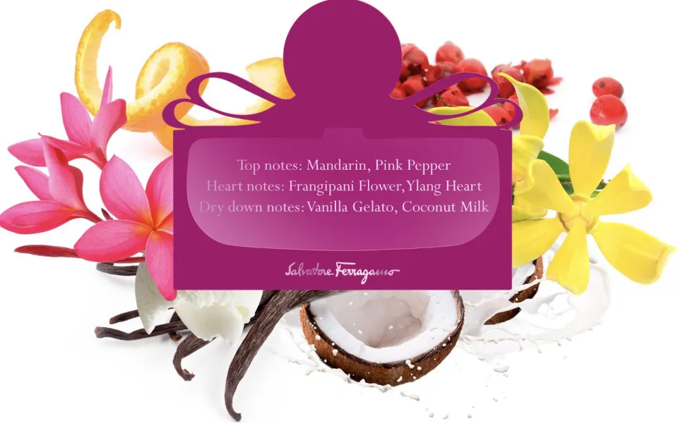 Signorina Ribelle is opstandig en charmant tegelijk, een perfecte compositie van contrasterende noten: de fruitige mix van mandarijn en peer ontmoet de kruidigheid van roze peper en onweerstaanbare ylang-ylang bloesem. Een sensueel boeket van frangipani en jasmijn smelt samen met exotische kokosmelk en het romige aroma van vanille-ijs, om door zijdezachte sandelhout-essences te worden verfijnd.