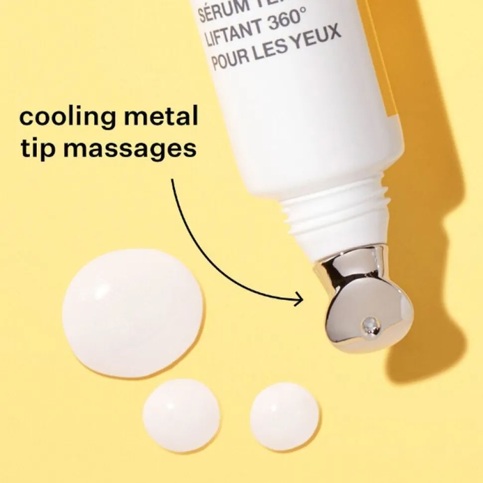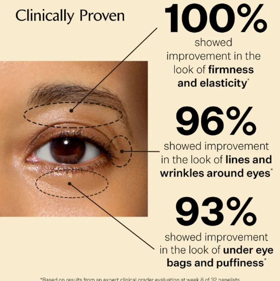 Zie dramatische oogresultaten rondom met het bestverkopende oogserum, nu geüpgraded om de kracht van drie unieke peptiden te benutten om het hele ooggebied zichtbaar strakker, steviger en helderder te maken. Deze lichte, gelaagde formule trekt in een oogwenk in met een niet-plakkerig gevoel voor dimensionale resultaten langs de bovenste en onderste ogen, plus kraaienpootjes en oogleden. Versterkt door een verkoelende applicator die zachtjes masseert en zwellingen verwijdert om deze delicate huid nieuw leven in te blazen.